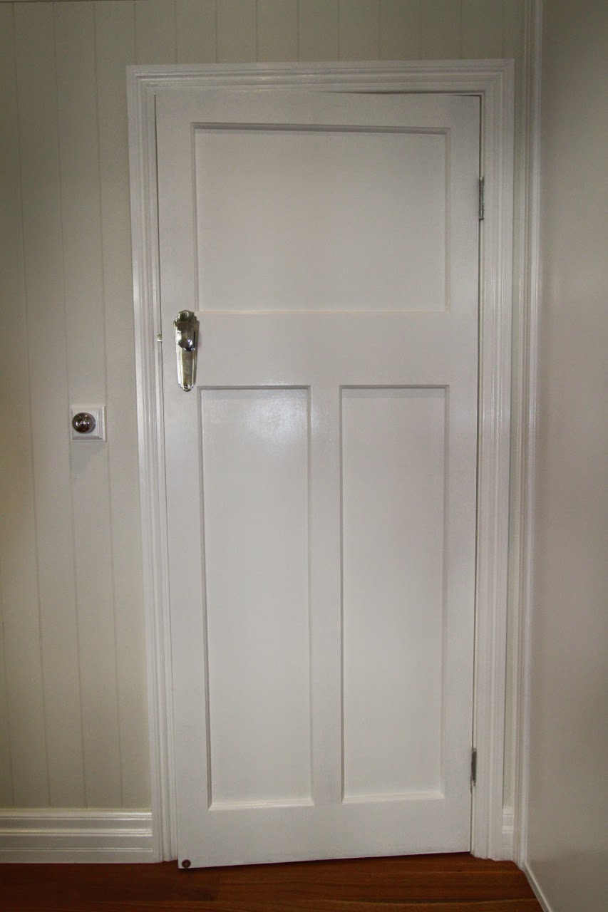 - Internal highwaisted doors: Deco knob latch chrome plated door handles (privacy latch for the bathrooms and lock latch for internal garage door) with matching tube latches (Tradco: 1090), satin chrome door stop - magnetic 75mm (1538)